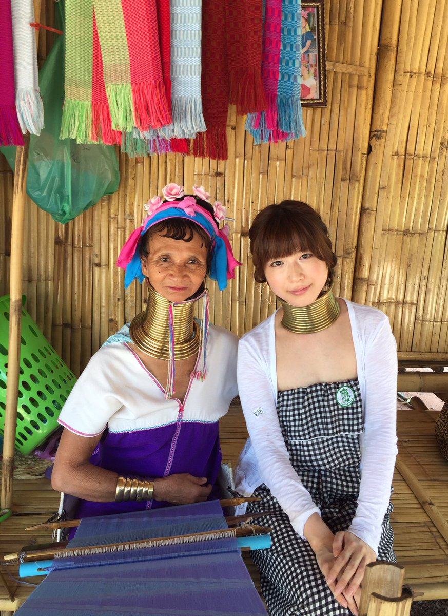 森崎まみ 首長族の方と写真撮れた やばい 歳の子と 長老 長老顔小さいし首半端ない 首の重りみたいなやつで肩が痛い 首長いってゆーか肩が下にある
